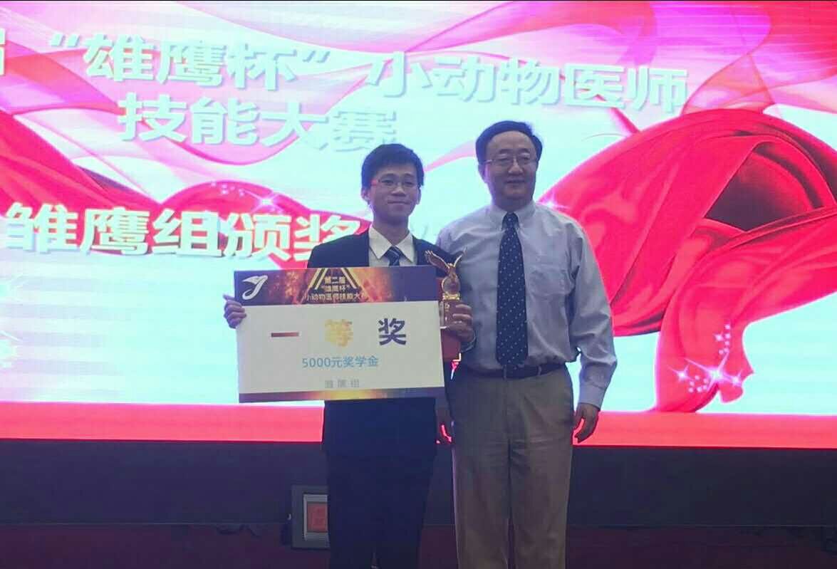 热烈祝贺WilliamHill官网学生覃翀豪在2016年“雄鹰杯”小动物医师技能大赛中夺得桂冠